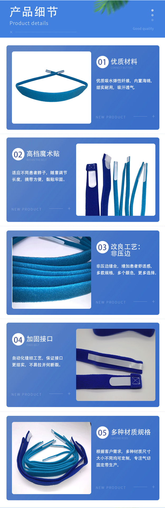 鑫威織造專業(yè)定制醫(yī)用氣切固定帶,為患者安全與舒適提供專業(yè)解決方案。我司生產(chǎn)的氣切固定帶廣泛應(yīng)用于臨床護(hù)理與家庭護(hù)理場(chǎng)景,專為氣管切開術(shù)后患者設(shè)計(jì),用于穩(wěn)固固定氣切套管,防止意外脫落,確保呼吸道通暢與護(hù)理安全。產(chǎn)品采用柔軟透氣的彈力針織面料與高粘性魔術(shù)貼(可選配我司優(yōu)質(zhì)尼龍背膠魔術(shù)貼)制作,親膚低敏,有效減少對(duì)頸部皮膚的壓傷與摩擦。可調(diào)節(jié)搭扣設(shè)計(jì),便于根據(jù)患者頸圍進(jìn)行精準(zhǔn)調(diào)節(jié),穩(wěn)固貼合的同時(shí)提升佩戴舒適度。我們支持多種規(guī)格、顏色與功能的定制服務(wù),可根據(jù)醫(yī)院或個(gè)人的具體需求,定制不同寬度、長(zhǎng)度及添加引流管固定扣等配件。鑫威織造擁有專業(yè)的醫(yī)療紡織品生產(chǎn)經(jīng)驗(yàn)與嚴(yán)格的質(zhì)量控制體系,致力于以匠心工藝呵護(hù)患者健康。我們誠(chéng)摯期待與醫(yī)療機(jī)構(gòu)、醫(yī)療器械公司及護(hù)理用品供應(yīng)商建立合作,歡迎聯(lián)系我們獲取樣品、詳細(xì)資料與定制報(bào)價(jià)。